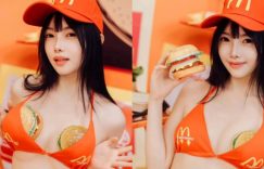 速食店,顧名思義就是需要快速送上餐點,讓客人可以以最高效率飽餐一頓。最近網路上流傳著一組速食店員的美照,畫面中的速食店員穿著比基尼,把兩顆漢堡放在胸前的比基尼中,難道是為了確保送到客人桌上的時候,溫度也還是熱的嗎?