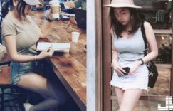 【EV女孩】新竹咖啡廳「超胸巨奶妹」低頭讀書,直接把胸部「整個放在桌上」黑咖啡都喝成拿鐵啦~