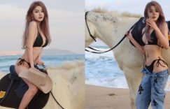 【EV女孩】比基尼長髮正妹「海邊爆乳騎馬」!超大膽作風原來是四川成都辣妹子!