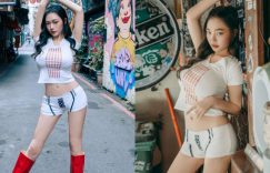 韓國有熱門女團BLACKPINK的Jennie,台灣有JKF性感女郎「苡昕」,在西門町的美國街現身,女神的氣場馬上感染整條街,穿著貼身的短T和極短的白色短褲,紅色長靴特別亮眼,纖瘦體態帶有無法忽視的銷魂曲線,蜜大腿和極細的腰線讓人鼻血狂流! (