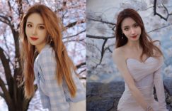 【EV女孩】櫻花樹下配「絕美正妹」,「性感香肩」下又帶水蛇腰讓人秒醉